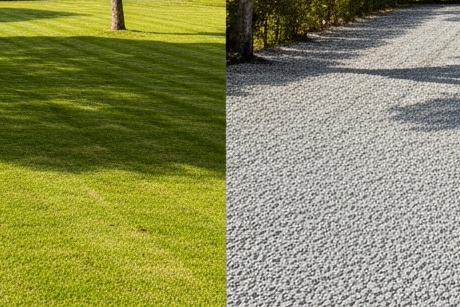 芝生のデコボコと水たまりを解決するために、お客様からの声をいただいて砕石への変更を行います。